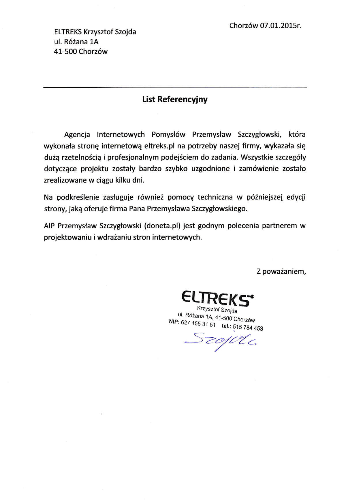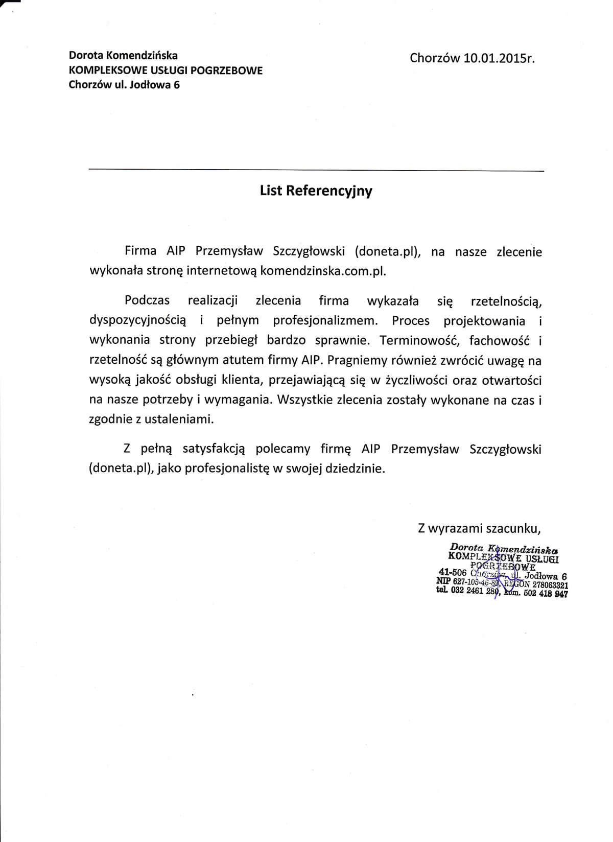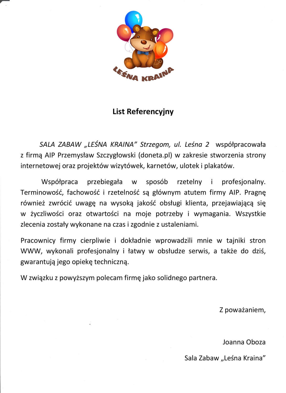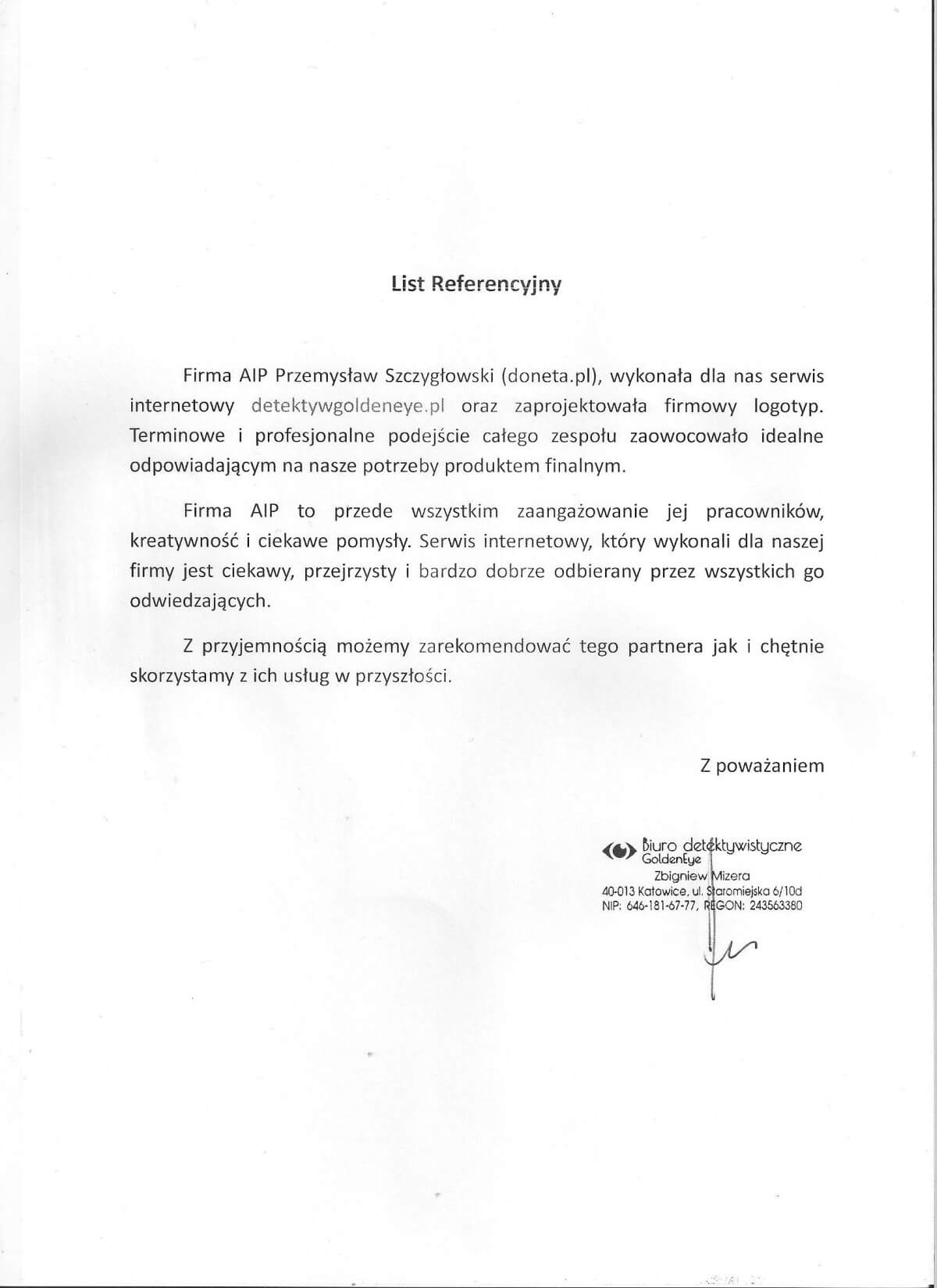 Zobacz wszystkie pisemne referencje jakie otrzymaliśmy
