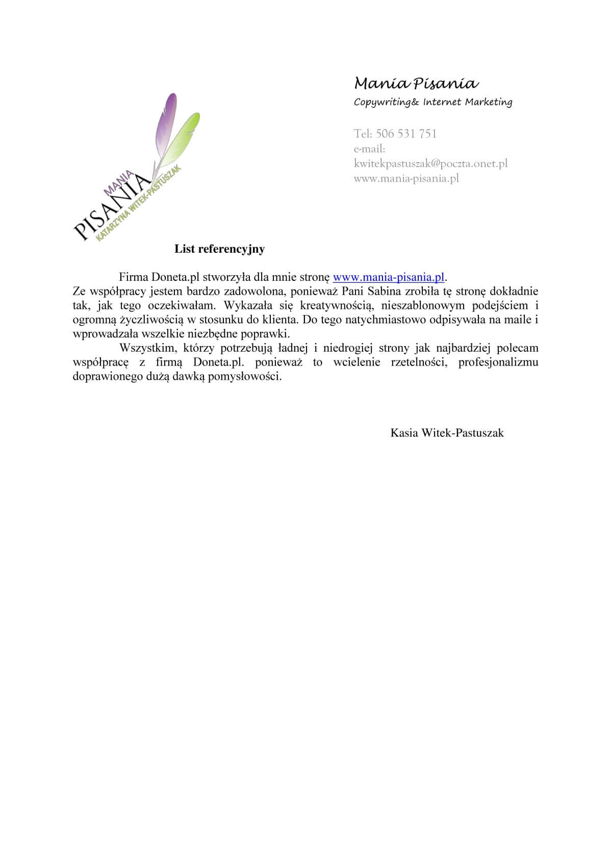 Jestem bardzo zadowolona z usług Donety. Przypadkiem znaleziona firma okazała się trafionym wyborem. Realizuję już z nią kolejną usługę. Super prosty i intuicyny CMS. Szybka realizacja i przede wszystkim szybka reakcja na zgłoszenia i zapytania. Dziękuję i naprawdę polecam.