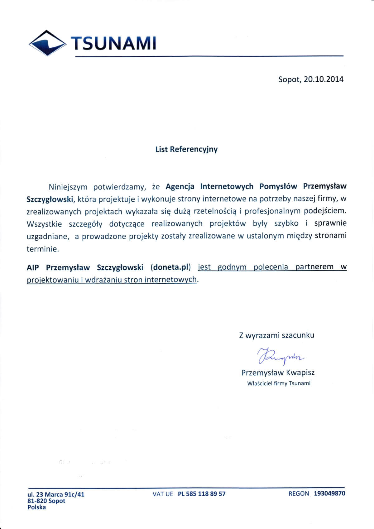 Świetny kontakt, szybka realizacja i poprawki w projekcie, pełna satysfakcja z wykonanej strony internetowej. CMS strony bardzo intuicyjny nawet dla opornych a cena za wykonanie stony śmiesznie niska. Polecam współpracę a wiem co mówię bo przez ostatnich kilka lat korzystałem z usług różnych firm i nigdy nie osiągnąłem tak dobrej relacji cena/jakość.